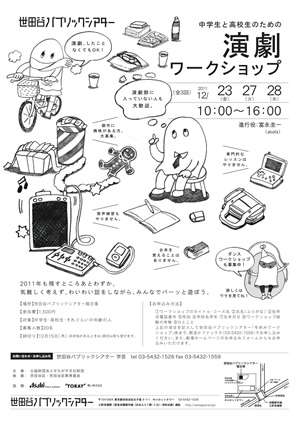 中学生と高校生のための演劇ワークショップ 2012/02/222024/10/02 • kamisama 世田谷パブリックシアター 「中学生と高校生のための演劇ワークショップ」チラシ デザイン・イラスト 関連記事 考えるワークショップ 岡さんのいえのクリスマス ところっこ子育てガイド 平成23年度版 お出かけ!狂言ワークショップ 春のウソツキワークショップ